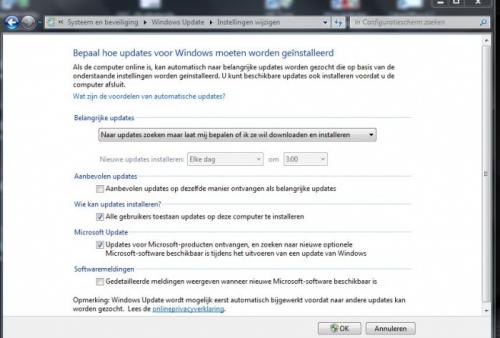 Hallo, door alle problemen ben ik maar begonnen met een systeem recovery op de c schijf. Dat betekent dat de andere schijven kunnen blijven staan. Alles gaat goed tot ik bij Windows update ben. Ik denk eerst maar 10 en dan weer 10 enz. Zie ik in de verzamel lijst staan dat er enkele update's mislukt zijn. ook zijn er een aantal per ongeluk door mij geannuleerd. Dat kwam omdat ik eerst 2 optionele update en belangrijke update te gelijk had ingedrukt, en dus de optionele weer uitgezet had. Hoe kan ik die 4 mislukte en 7 geannuleerde update's alsnog updaten. Bij die mislukte zat ook nog service pak 1 bij en bij die geannuleerde een Intel file.