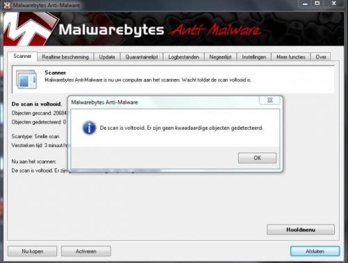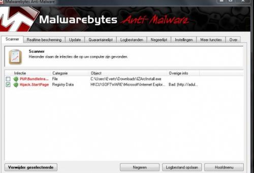 Bedankt voor je snelle reactie. Ik weet niet of jullie antwoord een standaard antwoord is, omdat ik dit antwoord bij bijna alle problemen terug vind. Ik zeg dat omdat ik een foto van een bestand had toegevoegd waar duidelijk vermeld word in het programma Malwarebyte dat ik 2 virussen heb. Maar goed ik weet nu ook dat jullie scherp zijn om alle binnenkomende problemen ook de aandacht geven. Perfect. Hier is een logje met de oude HijackThis Logfile of Trend Micro HijackThis v2.0.2 Scan saved at 19:06:02, on 3-11-2012 Platform: Unknown Windows (WinNT 6.01.3505 SP1) MSIE: Internet Explorer v9.00 (9.00.8112.16450) Boot mode: Normal Running processes: C:\Program Files (x86)\ASUS\ATK Package\ATKOSD2\ATKOSD2.exe C:\Program Files (x86)\ASUS\SmartLogon\sensorsrv.exe C:\Program Files (x86)\ASUS\ASUS Live Update\ALU.exe C:\Windows\SysWOW64\ACEngSvr.exe C:\Program Files (x86)\CyberLink\PowerDVD9\PDVD9Serv.exe C:\Program Files (x86)\ASUS\ASUS Data Security Manager\ADSMTray.exe C:\Program Files (x86)\Boingo\Boingo Wi-Fi\Boingo Wi-Fi.exe C:\Program Files (x86)\ASUS\ATK Package\ATK Media\DMedia.exe C:\Program Files (x86)\ASUS\ATK Package\ATK Hotkey\HControlUser.exe C:\Program Files (x86)\ASUS\Wireless Console 3\wcourier.exe C:\Windows\AsScrPro.exe C:\Program Files (x86)\CyberLink\Power2Go\CLMLSvc.exe C:\Program Files (x86)\ASUS\ControlDeck\ControlDeck.exe C:\Program Files (x86)\Mozilla Thunderbird\thunderbird.exe C:\Program Files (x86)\Google\Chrome\Application\chrome.exe C:\Program Files (x86)\Google\Chrome\Application\chrome.exe C:\Program Files (x86)\Google\Chrome\Application\chrome.exe C:\Program Files (x86)\Google\Chrome\Application\chrome.exe C:\Program Files (x86)\Trend Micro\HijackThis\HijackThis.exe R1 - HKCU\Software\Microsoft\Internet Explorer\Main,Default_Page_URL = Bing R1 - HKCU\Software\Microsoft\Internet Explorer\Main,Search Page = Bing R0 - HKCU\Software\Microsoft\Internet Explorer\Main,Start Page = U heeft uw sessie op Adult FriendFinder beëindigd... R1 - HKLM\Software\Microsoft\Internet Explorer\Main,Default_Page_URL = MSN.com R1 - HKLM\Software\Microsoft\Internet Explorer\Main,Default_Search_URL = Bing R1 - HKLM\Software\Microsoft\Internet Explorer\Main,Search Page = Bing R0 - HKLM\Software\Microsoft\Internet Explorer\Main,Start Page = MSN.com R0 - HKLM\Software\Microsoft\Internet Explorer\Search,SearchAssistant = R0 - HKLM\Software\Microsoft\Internet Explorer\Search,CustomizeSearch = R0 - HKLM\Software\Microsoft\Internet Explorer\Main,Local Page = C:\Windows\SysWOW64\blank.htm R0 - HKCU\Software\Microsoft\Internet Explorer\Toolbar,LinksFolderName = F2 - REG:system.ini: UserInit=userinit.exe O2 - BHO: AcroIEHelperStub - {18DF081C-E8AD-4283-A596-FA578C2EBDC3} - C:\Program Files (x86)\Common Files\Adobe\Acrobat\ActiveX\AcroIEHelperShim.dll O2 - BHO: (no name) - {5C255C8A-E604-49b4-9D64-90988571CECB} - (no file) O2 - BHO: Search Helper - {6EBF7485-159F-4bff-A14F-B9E3AAC4465B} - C:\Program Files (x86)\Microsoft\Search Enhancement Pack\Search Helper\SearchHelper.dll O2 - BHO: Groove GFS Browser Helper - {72853161-30C5-4D22-B7F9-0BBC1D38A37E} - C:\PROGRA~2\MICROS~1\Office14\GROOVEEX.DLL O2 - BHO: Partner BHO Class - {83FF80F4-8C74-4b80-B5BA-C8DDD434E5C4} - C:\ProgramData\Partner\Partner.dll O2 - BHO: Windows Live Aanmelden - Help - {9030D464-4C02-4ABF-8ECC-5164760863C6} - C:\Program Files (x86)\Common Files\Microsoft Shared\Windows Live\WindowsLiveLogin.dll O2 - BHO: Google Toolbar Helper - {AA58ED58-01DD-4d91-8333-CF10577473F7} - C:\Program Files (x86)\Google\Google Toolbar\GoogleToolbar_32.dll O2 - BHO: Google Toolbar Notifier BHO - {AF69DE43-7D58-4638-B6FA-CE66B5AD205D} - C:\Program Files (x86)\Google\GoogleToolbarNotifier\5.2.4204.1700\swg.dll O2 - BHO: URLRedirectionBHO - {B4F3A835-0E21-4959-BA22-42B3008E02FF} - C:\PROGRA~2\MICROS~1\Office14\URLREDIR.DLL O2 - BHO: Google Dictionary Compression sdch - {C84D72FE-E17D-4195-BB24-76C02E2E7C4E} - C:\Program Files (x86)\Google\Google Toolbar\Component\fastsearch_B7C5AC242193BB3E.dll O2 - BHO: Windows Live Toolbar Helper - {E15A8DC0-8516-42A1-81EA-DC94EC1ACF10} - C:\Program Files (x86)\Windows Live\Toolbar\wltcore.dll O3 - Toolbar: Google Toolbar - {2318C2B1-4965-11d4-9B18-009027A5CD4F} - C:\Program Files (x86)\Google\Google Toolbar\GoogleToolbar_32.dll O3 - Toolbar: &Windows Live Toolbar - {21FA44EF-376D-4D53-9B0F-8A89D3229068} - C:\Program Files (x86)\Windows Live\Toolbar\wltcore.dll O4 - HKLM\..\Run: [RemoteControl9] "C:\Program Files (x86)\Cyberlink\PowerDVD9\PDVD9Serv.exe" O4 - HKLM\..\Run: [updatePSTShortCut] "C:\Program Files (x86)\Cyberlink\DVD Suite\MUITransfer\MUIStartMenu.exe" "C:\Program Files (x86)\Cyberlink\DVD Suite" UpdateWithCreateOnce "Software\CyberLink\PowerStarter" O4 - HKLM\..\Run: [updateLBPShortCut] "C:\Program Files (x86)\CyberLink\LabelPrint\MUITransfer\MUIStartMenu.exe" "C:\Program Files (x86)\CyberLink\LabelPrint" UpdateWithCreateOnce "Software\CyberLink\LabelPrint\2.5" O4 - HKLM\..\Run: [updateP2GoShortCut] "C:\Program Files (x86)\CyberLink\Power2Go\MUITransfer\MUIStartMenu.exe" "C:\Program Files (x86)\CyberLink\Power2Go" UpdateWithCreateOnce "SOFTWARE\CyberLink\Power2Go\6.0" O4 - HKLM\..\Run: [boingo Wi-Fi] "C:\Program Files (x86)\Boingo\Boingo Wi-Fi\Boingo.lnk" O4 - HKLM\..\Run: [ATKMEDIA] C:\Program Files (x86)\ASUS\ATK Package\ATK Media\DMedia.exe O4 - HKLM\..\Run: [HControlUser] C:\Program Files (x86)\ASUS\ATK Package\ATK Hotkey\HControlUser.exe O4 - HKLM\..\Run: [Wireless Console 3] C:\Program Files (x86)\ASUS\Wireless Console 3\wcourier.exe O4 - HKLM\..\Run: [bCSSync] "C:\Program Files (x86)\Microsoft Office\Office14\BCSSync.exe" /DelayServices O4 - HKLM\..\Run: [Adobe ARM] "C:\Program Files (x86)\Common Files\Adobe\ARM\1.0\AdobeARM.exe" O4 - HKLM\..\RunOnce: [Malwarebytes Anti-Malware] C:\Program Files (x86)\Malwarebytes' Anti-Malware\mbamgui.exe /install /silent O4 - HKUS\S-1-5-19\..\Run: [sidebar] %ProgramFiles%\Windows Sidebar\Sidebar.exe /autoRun (User 'LOCAL SERVICE') O4 - HKUS\S-1-5-19\..\RunOnce: [m