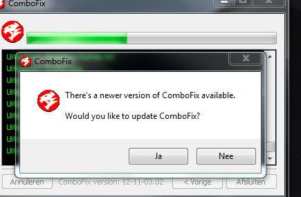 Goede morgen Kape, ik zag dat u al weer bezig was geweest. Terwijl ik uw opdracht uitvoerde kreeg ik een update van Combofix. Ik heb dat niet gedaan omdat ik niet wist of ik dan alles weer opnieuw moest installeren of dat het programma er overheen word gezet. Vervolgens ging het icoontje van Microsoft Secrurity E weg en moest ik dat via alle programma's uitzetten. Daarna uw opdracht uitgevoerd, alleen weet ik niet of dat het logfiletje van Combofix over de oude file schrijft of dat ik die eerst had moeten verwijderen. ComboFix.txt