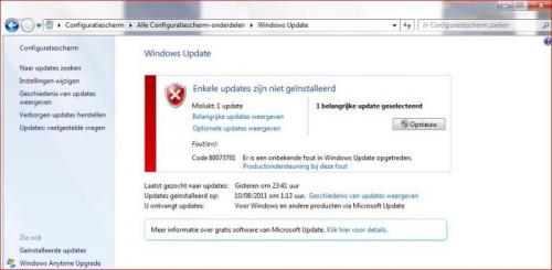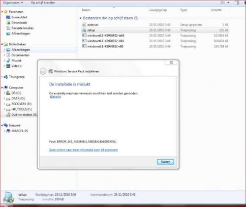 22. Beste Via Windows Update probeer ik het servicepack 1 voor x64 systemen (KB976932) voor Win 7 te installeren, het downloaden lukt wel maar halfweg de installatie word deze afgebroken De installatie doe ik als administrator Ik heb de virusscanner al uitgeschakeld, de hotfix KB947821 uitgevoerd Altijd met hetzelfde resultaat Weet er iemand raad? Alvast bedankt EDIT : heb de berichten van je dubbelpost samengevoegd. Zo houden we een beter overzicht !