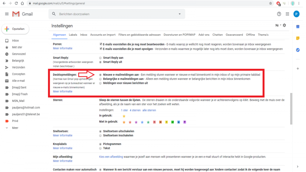 20. Laptop w10 : Van alle mogelijke meldingen krijg ik een bericht in het meldingsvenster rechts onder op het bureelblad, behalve van mails van gmail. Heb alles reeds geprobeerd....geen resultaat. Op mijn smartphone en tablet is dit ok. hoe zou dit komen. Wat zie ik over het hoofd .Zie bijlage's
