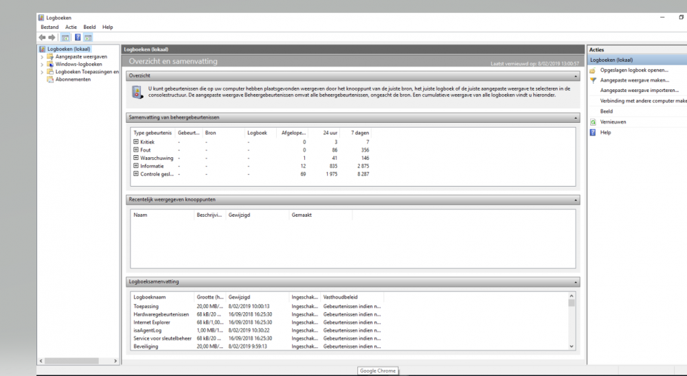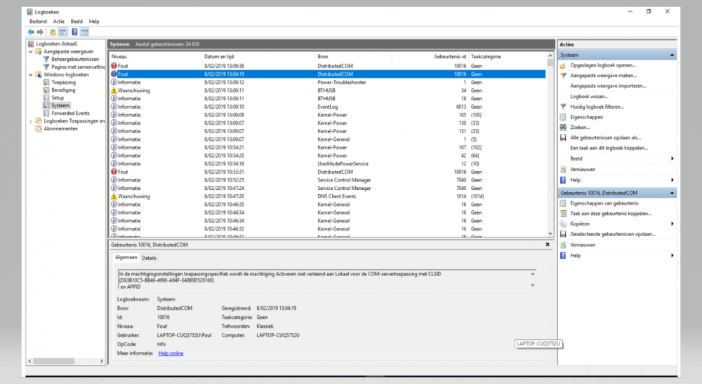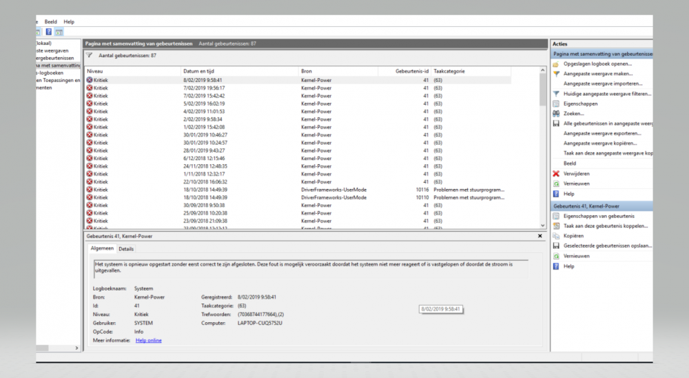 Ziehier enkele screen beelden van logboeken. Misschien kan je daar iets van opmaken. Ik werk zoals steeds op de batterij. Netstroom is er alleen op te laden.