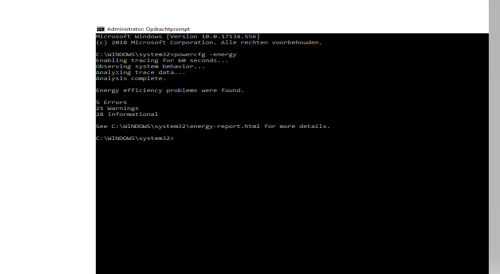 Dus vanaf nu werken "aan het net". Toch nog dit aan toevoegen....powercfg met 5 fouten en 21 waarschuwingen.....op 60 seconden ???? Ik hou u op de hoogte... vg, Pol