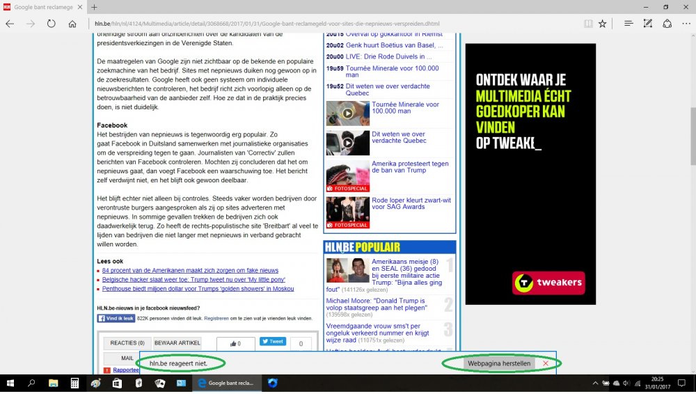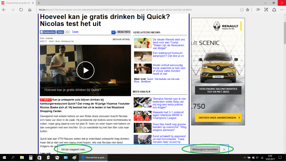 20. 20 X per dag ....reageert niet......pagina herstellen. ZEER vervelend. Wat loopt hier fout.0. Nieuwe laptop ACER ES1-731-C24E Windiws10 Microsoft Edge.