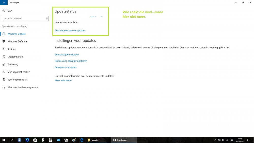 11. Hier, vg Pol Ja ik ben ook bezig met MS help lijn en op Seniorennet.be Waarom ? Als ik die laptop moet binnen brengen op de TD van de verkoper ben ik hem ten minste 7 werkdagen kwijt....ik zit veel op pc als verantwoordelijke van senioren werking. (ben zelf ook op pensioen) en ze zullen me misschien een herstelrekening maken.