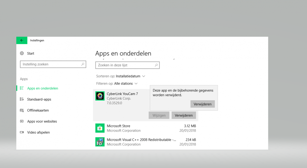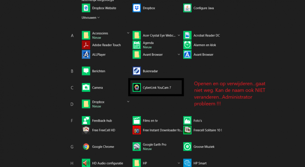 17. Kan die app alleen "verwijderen" of wijzigen" met de rechter muisklik. Wijzigen....dan download die app opnieuw er wijzigt niets. Verwijderen.....app weg.