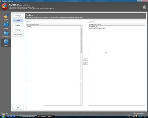 Dit lukt ook niet...ze blijven er allemaal instaan. Ik kan wel cookies verplaatsen van de linker naar de rechter kolom en andersom.......maar verwijderen lukt niet. vg, Pol