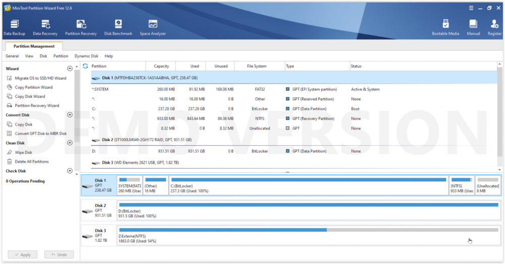 @Passer Na het volgen van uw uitleg in deze topic https://www.pc-helpforum.be/topic/78120-slechts-300-gb-van-de-5-tb-beschikbaar/page/3/#comment-605570 heb ik ook deze minitool geïnstalleerd. Op schijf 0 staat er een klein gedeelte "niet toegewezen" die ik zou willen toevoegen aan "C" Ik mis echter het deel "Move/resize.