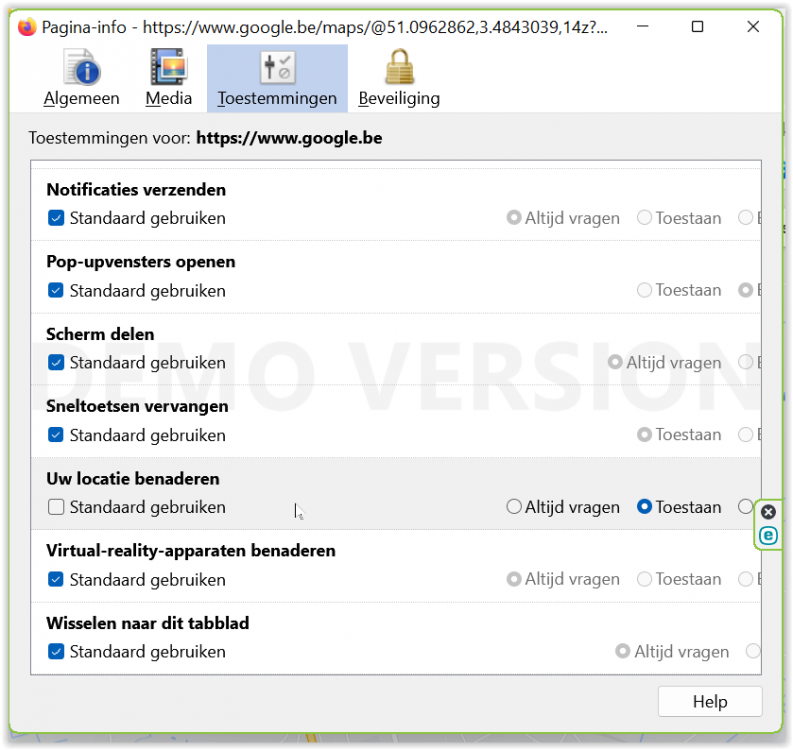 Ben je echt tot hier geraakt ? "Uw locatie benaderen"..."Standaard gebruiken" uit vinken en "Toestaan" aanvinken