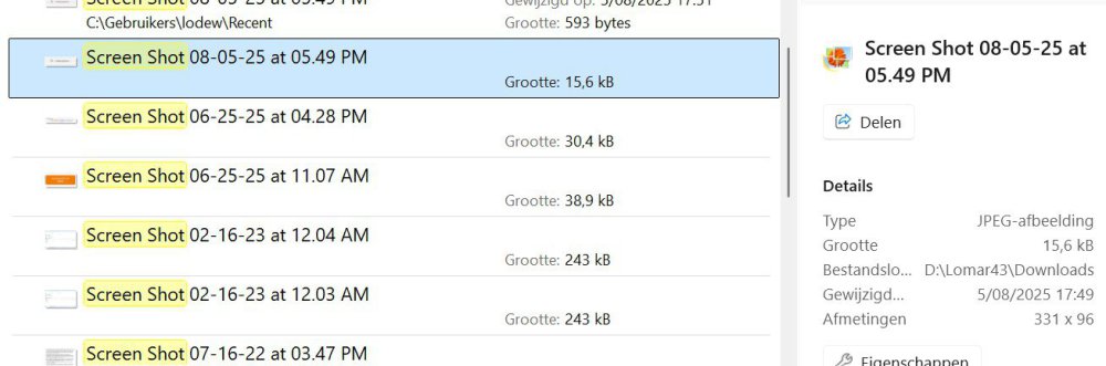 Nu nog de resultaten van het zoeken op deze pc naar screen shots.
