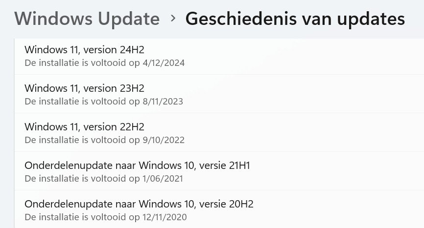 Beste, We zijn nu bijna eind 2050 en in mijn Update Geschiedenis staat als laatste update de 24h2. Is dit normaal of heb ik updates gemist. Bij het zoeken naar updates worden en geen gevonden en is mijn PC Bijgewerkt. dank bij voorbaat