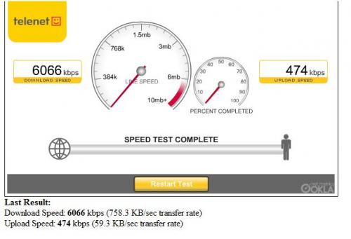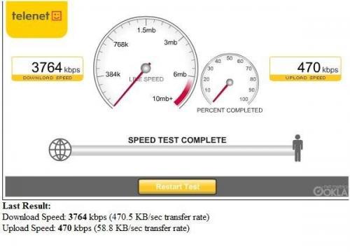 Ik ben nu een jaar bij Telenet en ben in bezit van Expresnet, telefoon bij inbegrepen voor vast maandelijks bedrag. Op zich verloopt alles prima naar wens met een uitzonderling is mijn snelheid van downloaden aan de lage kant. Dit is al van het begin. Ik ben wel met 2 pc's op het net met 2 Apdapsters van Netgear XE102 14 Mbps Powerline-adapter Internet via het stopcontact Maar de snelheid van de 2 pc's zijn verschillend, samen halen we een snelheid van 9630 Mbps. De ene pc heeft 6066 Mbps het dicht bij de modem gelegen en de 2de pc heeft maar een snelheid van 3764 Mbps en staat op de slaapkamer. :s Telenet al op hoogte gebracht en zeggen gewoon dat mijn lijn tip top in orde is. Zodus snel gezegd. Thans mijn pc's virusvrij en geen rotzooi bevatten zoals spyware. dit kan in mijn geval al geen vertraging opleveren. En Telenet zou de snelheid toch verhogen naar 15 Mbps, niets van te merken. Bij mijn overbuur heeft 1 pc en heeft een snelheid van 9800 Mpbs, die zijn snelheid is ook niet toegenomen. Telenet geeft gewoon valse beloften als je het zo wilt vergelijken. Zou ik mijn internet toch op eender manier in snelheid kunnen opkrikken. We betalen al genoeg t.o.v. andere landen. :s:s:s