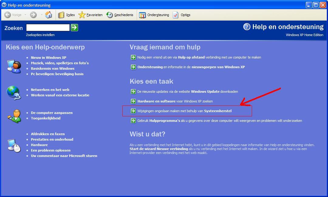 Hoe een herstelpunt in Windows XP terugzetten ?