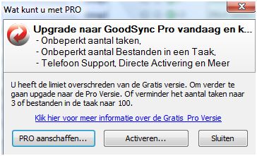 Synchroniseren lukt niet meer, moet overstappen naar de PRO- versie.