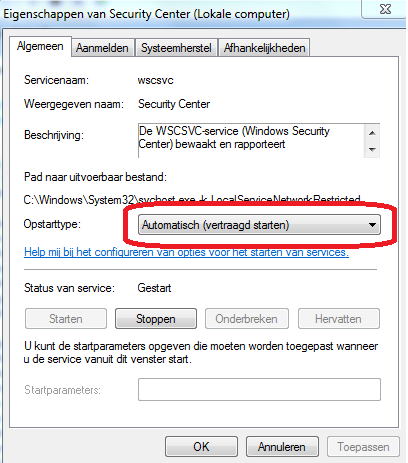 Dat leek me een goed idee, tot ik bij "Schakel achter Opstarttype de Service naar Automatisch." kwam.