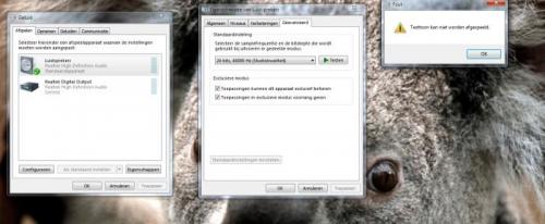 En kan bijvoorbeeld ook niet 'geluid testen', want dan komt er 'testtoon kan niet afgespeeld worden'