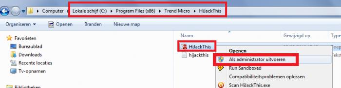 Als het dan nog niet lukt, moet je het programma hijackthis als administrator uitvoeren.