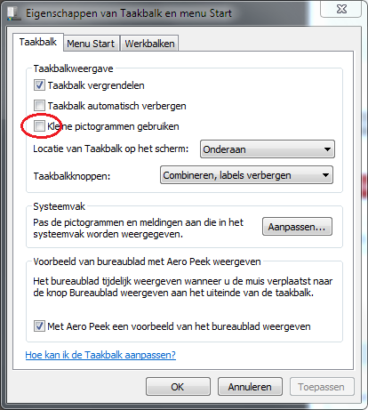Hmm Taakbalk is klein waardoor ook de iccoontjes op de taakbalk verkleint zijn