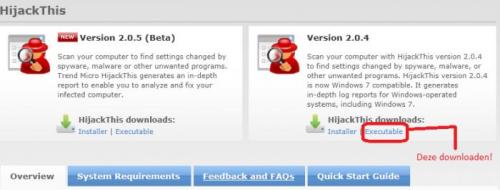 1. Klik bij "HijackThis Downloads" op "Installer".