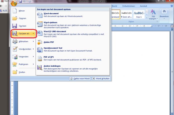 in het venster er juist onder zoek je de functie "opslaan als".