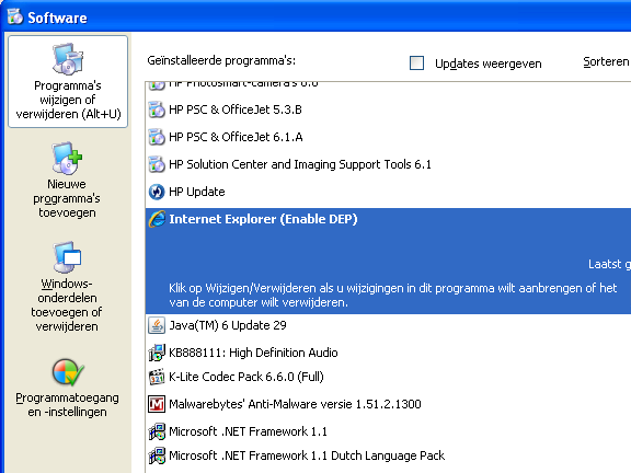 en wat is dan IE (ENABLE DEP) dat staat ook in mijn sofware mag dit verwijderd worden