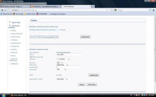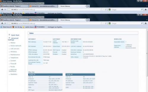 Dat met 'config' lukt helemaal niet. Ik krijg steeds hetzelfde resultaat. Het vreemde is dat ik daarnet weer helemaal zonder internet zat. Als ik nu met de cursor op de twee kleine schermpjes onderaan kom, dan zie ik drie verschillende netwerken. Geen idee waar die vandaan komen en ik heb ook geen idee hoe ik die moet wegkrijgen. Twee ervan hebben lokaal en internet en dan is er nog een ander (met de naam van mijn modem) Sagem die enkel lokaal is. En dus nog steeds geen draadloze verbinding.