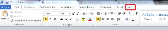 Nu zie je een extra menu van Avery.