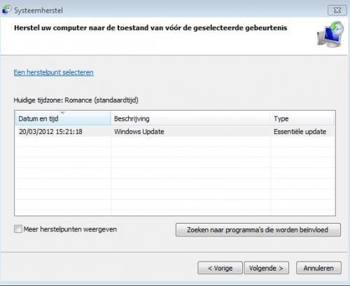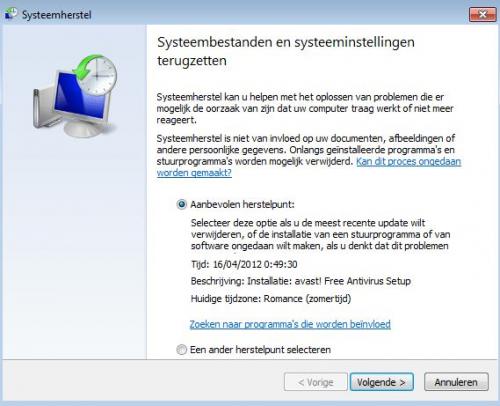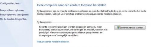 Het is aangewezen om de bestaande herstelpunten te verwijderen (daar kunnen besmette herstelpunten tussen zitten die je zou kunnen terugzetten) door systeemherstel tijdelijk uit te schakelen. Doe dit via Configuratiescherm -> Systeem en Onderhoud -> Systeem -> tabblad "Systeembeveiliging" -> vinkje weghalen bij de schijf waarvan je de herstelpunten wil verwijderen -> klikken op "toepassen".