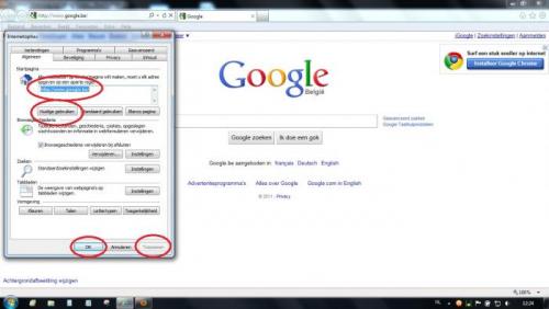 Maar als ik dit instel bij extra-internetopties-instellingen-startpagina, dan staat die de volgende dag weer op een blanco pagina.