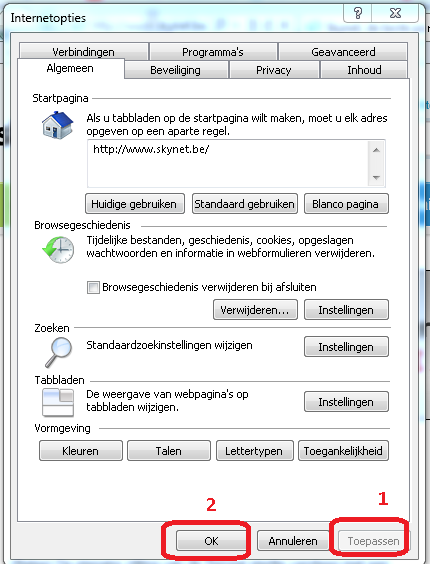 Als u de websites invult (die als homepagina moet dienen), hebt u dan op Toepassen geklikt zoals reeds gevraagd in bericht 3?