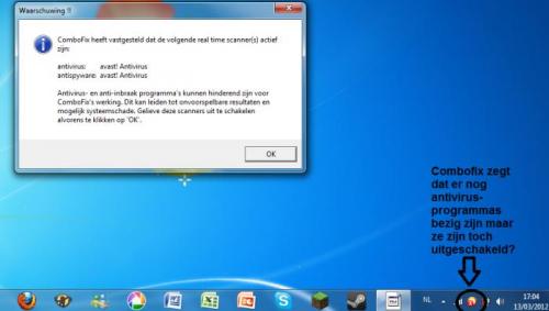 - Ik heb Avast antivirus alle schilden uitgeschakelt, maar toen ik het logje in combofix sleepte was het weer van dan antivirus niet uitgeschakelt was maar ik heb OK geklikt.