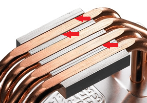 Als men gebruik maakt van een HDT(Heat-pipe Direct Touch) koeler zoals in de volgende afbeelding.
