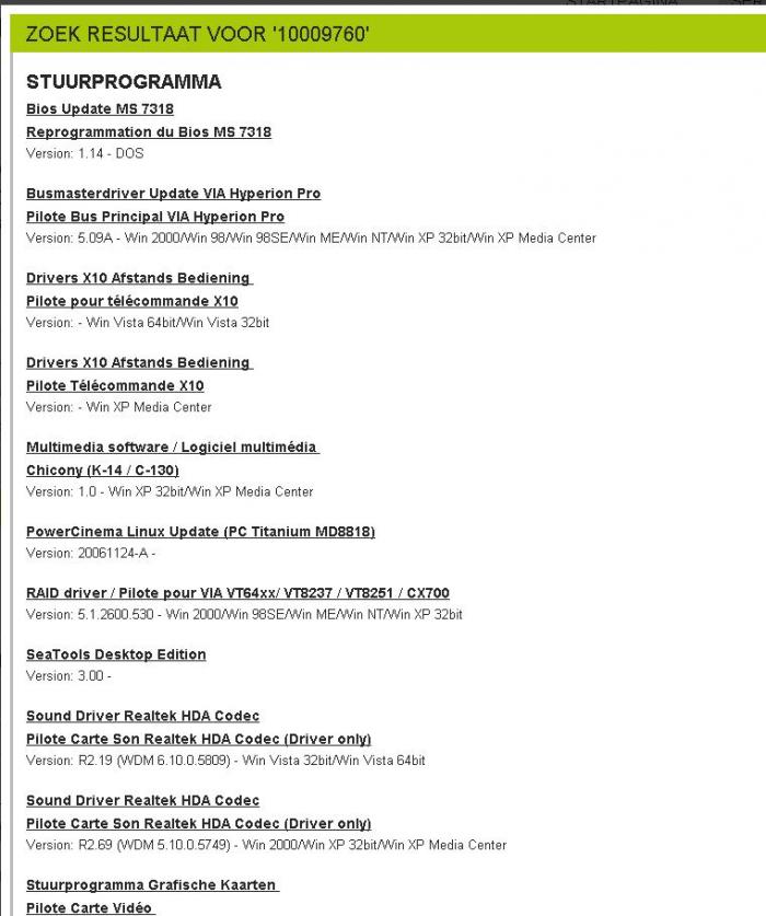 Als je naar deze link (klik erop) gaat en je vult het msn nummer in vindt je de nodige drivers terug.