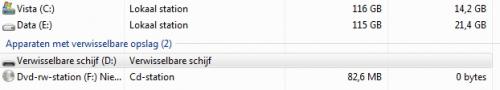 Onder explorer wordt hij gezien als cd/dvd rom?? (1e plaatje) & 500GB portable HD wordt weergegevn als vaste schijf net als C&E (hier niet zichtbaar)