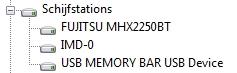 Onder apparaatbeheer wordt hij onder schijfstations weergegeven as USB memory bar USB device (2e plaatje)