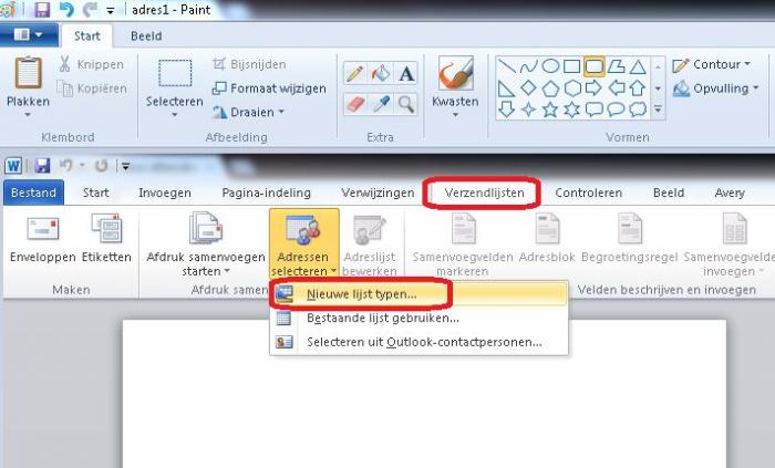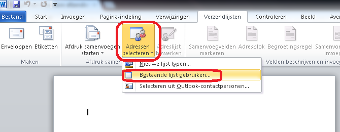Wil je nadien de adreslijst gebruiken klik je in verzendlijsten op bestaande lijst gebruiken...