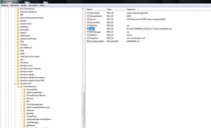 Doe ook even het volgende : bij Start zet je in het zoekvak de opdracht regedit. Dan ga je naar het register van de PC. Speur daar via "zoeken" of je het bestand msepfxaka.exe kan vinden. Laat dan eerst even weten of dit het geval is vóór we daarmee verder gaan.