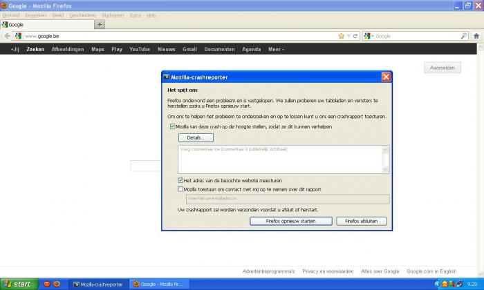 Geen enkel crashrapport van mozilla firefox. Niks meer. Alles werkt perfect (mozilla firefox)