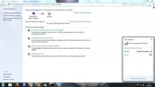 Als ik het netwerkcentrum open, staat er dat er geen verbinding is tussen mijn laptop --X-- internet.