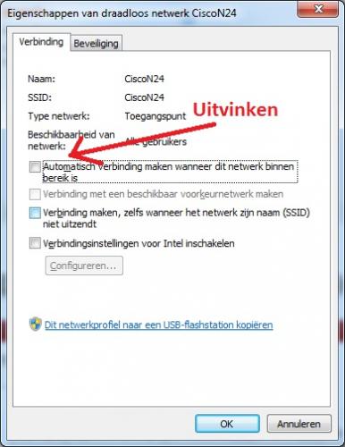 Dus niet uw eigen router en doe dan zoals onderstaande afbeelding in tab verbinding