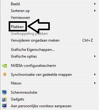 Klik met je rechtermuisknop op een lege plaats op je bureaublad en kies nu in het menu voor Plakken.