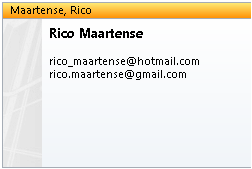 ik klik op Rico Maartense (rico_maartense@hotmail.com) en hij ziet dat het e-mail adres verschilt dus hij voegt hem toe.