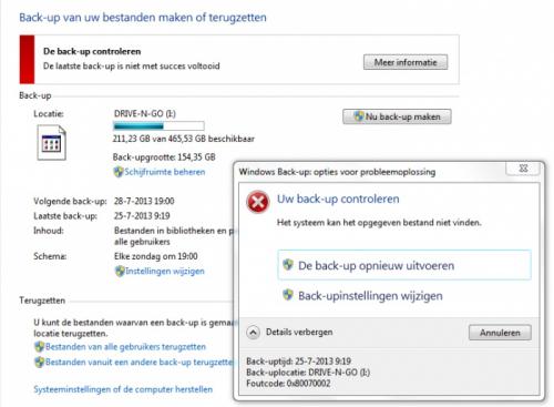 Een back-up maken lukt ook niet, ik krijg de melding: Kan geen schaduwkopie maken.