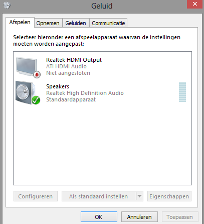 Er komt wel gewoon geluid uit de bureaubladluidsprekers, alleen niet richting de TV..........