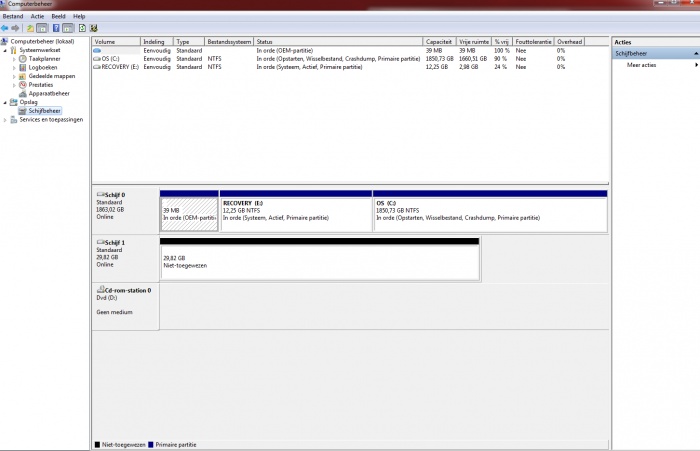 Ik voeg een schermafbeelding bij van schijfbeheer.
