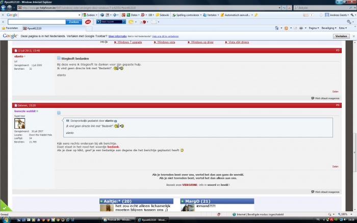 De schermafbeelding werd gemaakt op een Vista-PC, indien het NIET om de PC gaat die je gaat herinstalleren is het aangewezen dat je hier een HijackThis-logje post: de Ask-toolbar is immers aanwezig op deze PC.