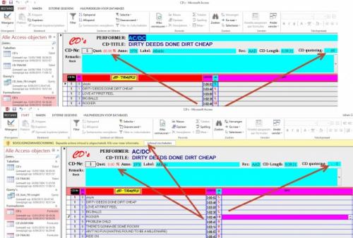 Ik heb een Access-database voor mijn cd's. Die heeft dus een tabel voor de cd's zelf en een gelinkte tabel waar de songs per cd inkomen.