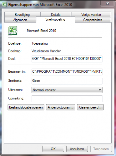 Klik met de rechter muisknop op de snelkoppeling waarmee je excel (of word) normaal opstart.