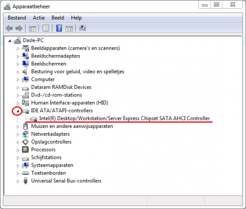 Klik op het driehoekje voor IDE ATA/ATAPI-controllers.