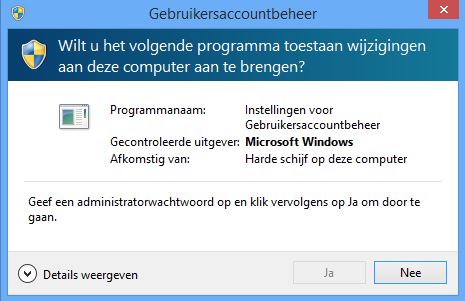 Probeer eens of je iets kan aanpassen via instellingen voor gebruikersaccountbeheer wijzigen in dat zelfde venster.